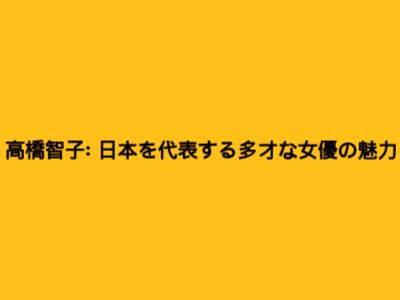 高橋智子の魅力とは? 彼女の演技を支えるもの