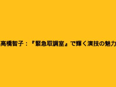 『緊急取調室』での高橋智子の演技分析:圧倒的な存在感