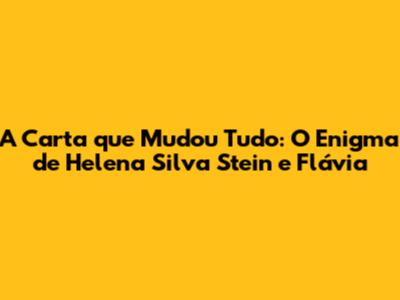 A Carta Misteriosa: Caso Helena Silva Stein E Flávia