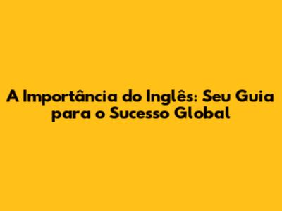 A Importância Do Inglês: Seu Guia Para O Sucesso Global