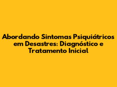 Abordando Sintomas Psiquiátricos Em Desastres: Diagnóstico E Tratamento Inicial