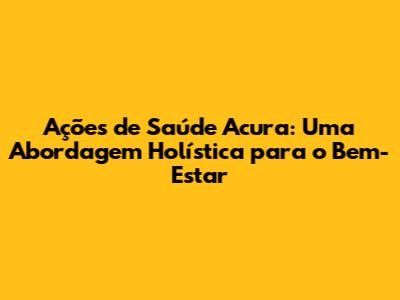 Ações de saúde Acura devem ser sinônimo de cuidado integral, indo além do tratamento de doenças e focando na promoção do bem-estar em todas as suas dimensões. A saúde, em sua essência, é um estado de completo equilíbrio físico, mental e social, e as iniciativas da Acura precisam refletir essa visão abrangente. Neste artigo, vamos explorar como as ações de saúde Acura podem ser combinadas e direcionadas para a prevenção, o atendimento integral e a promoção da saúde, garantindo o acesso a ações de promoção, proteção e recuperação para todos.