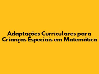 Adaptações Curriculares Para Crianças Especiais Em Matemática