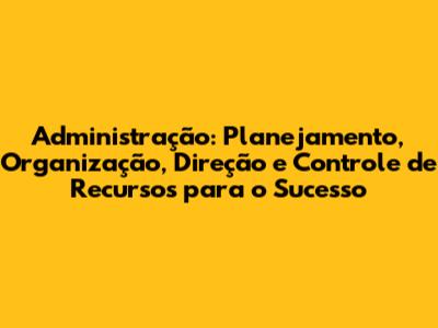 Administração: Planejar, Organizar, Dirigir E Controlar Recursos