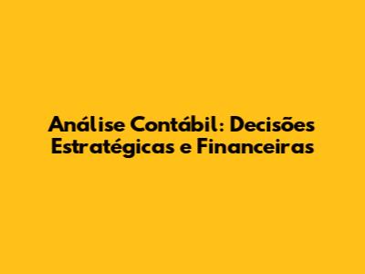 Análise Contábil: Decisões Estratégicas E Financeiras