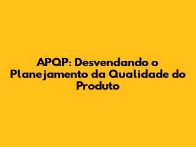 APQP: Desvendando O Planejamento Da Qualidade Do Produto
