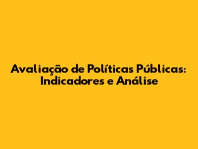 Avaliação De Políticas Públicas: Indicadores E Análise