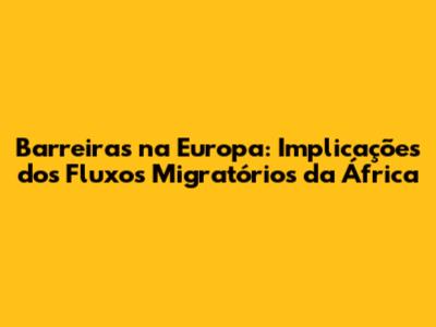 Barreiras Na Europa: Implicações Dos Fluxos Migratórios Da África