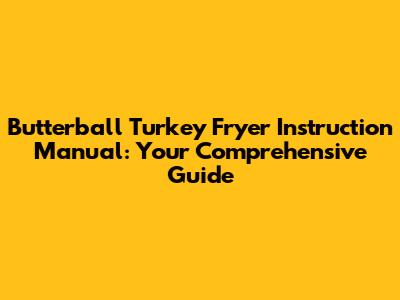 Butterball Turkey Fryer Manual: Your Complete Guide