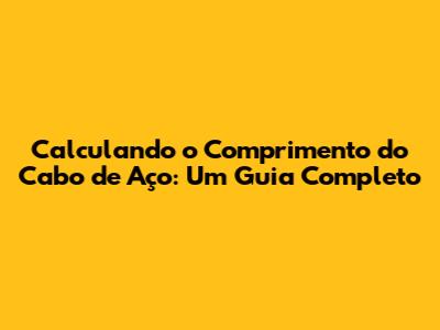 Calculando O Comprimento Do Cabo De Aço: Um Guia Completo