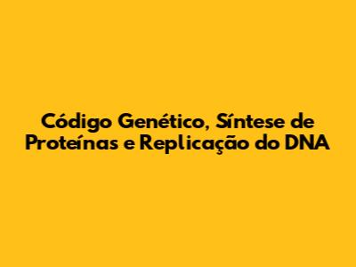 Código Genético, Síntese De Proteínas E Replicação Do DNA