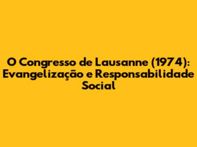 Congresso De Lausanne (1974): Evangelização E Responsabilidade