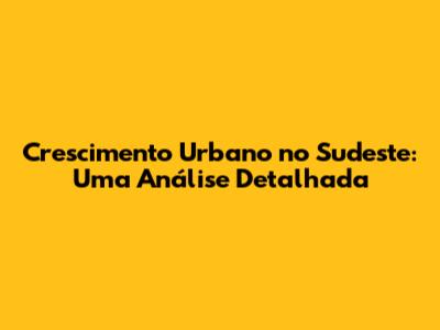 Crescimento Urbano No Sudeste: Uma Análise Detalhada