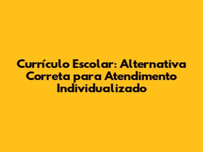 Currículo Escolar: Alternativa Correta Para Atendimento Individualizado