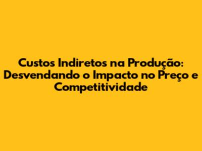 Custos Indiretos Na Produção: Impacto No Preço E Competitividade