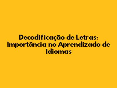 Decodificação De Letras: Importância No Aprendizado De Idiomas