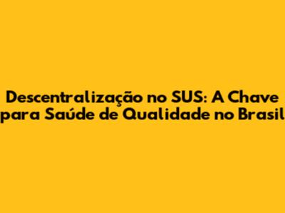 Descentralização No SUS: A Chave Para Saúde De Qualidade No Brasil