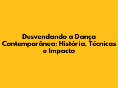 Desvendando A Dança Contemporânea: História, Técnicas E Impacto