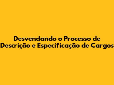 Desvendando O Processo De Descrição E Especificação De Cargos