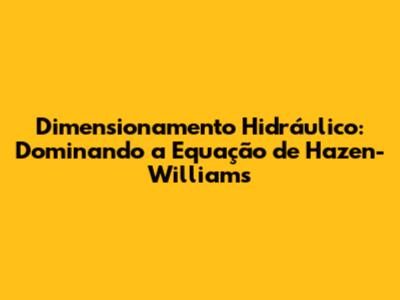 Dimensionamento Hidráulico: Dominando A Equação De Hazen-Williams