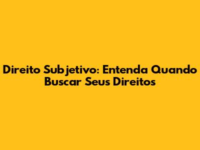 Direito Subjetivo: Entenda Quando Buscar Seus Direitos