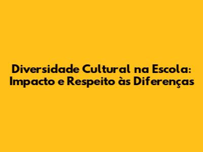 Diversidade Cultural Na Escola: Impacto E Respeito Às Diferenças