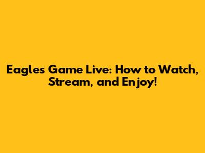 Eagles Game Live: How To Watch, Stream, And Enjoy!