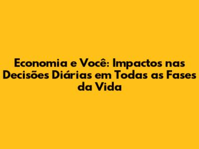 Economia E Você: Decisões Diárias Em Todas As Fases Da Vida