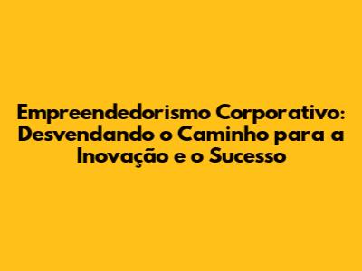 Empreendedorismo Corporativo: Guia Completo Para Inovação E Sucesso