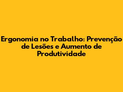 Ergonomia No Trabalho: Prevenção De Lesões E Aumento De Produtividade