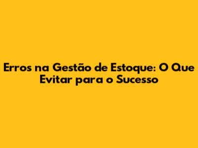 Erros Na Gestão De Estoque: O Que Evitar Para O Sucesso