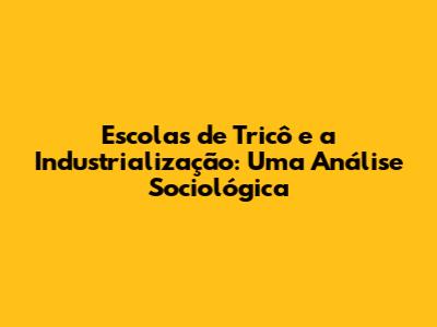 Escolas De Tricô E A Industrialização: Uma Análise Sociológica