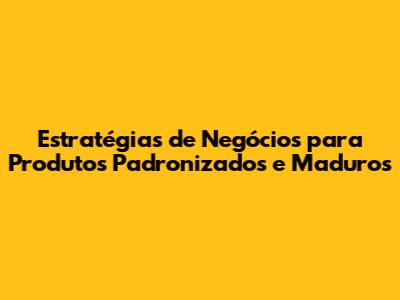 Estratégias De Negócios: Produtos Padronizados E Maduros