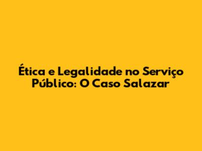 Ética E Legalidade No Serviço Público: O Caso Salazar