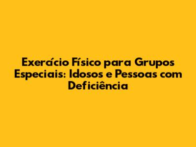 Exercício Físico Para Grupos Especiais: Idosos E Pessoas Com Deficiência