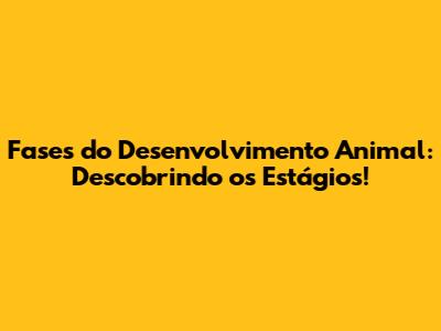 Fases Do Desenvolvimento Animal: Descobrindo Os Estágios!