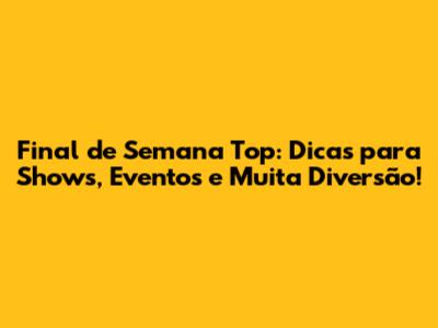 Final De Semana Top: Dicas Para Shows, Eventos E Muita Diversão!