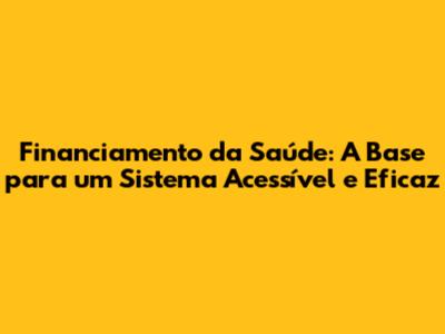 Financiamento Da Saúde: Estrutura Essencial Para Todos
