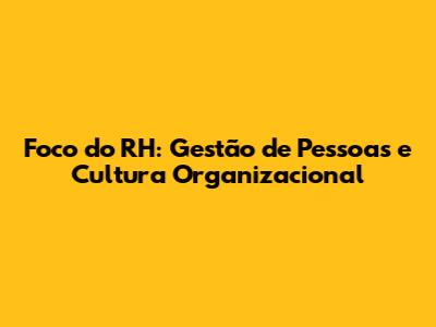 Foco Do RH: Gestão De Pessoas E Cultura Organizacional