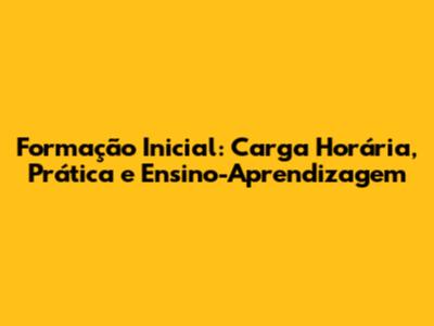 Formação Inicial: Carga Horária, Prática E Ensino-Aprendizagem
