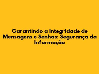 Garantindo Integridade De Mensagens E Senhas: Segurança Da Informação