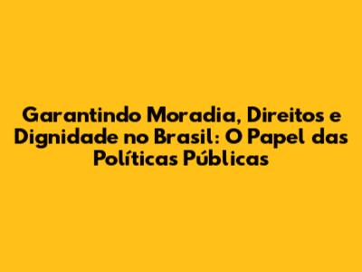 Garantindo Moradia, Direitos E Dignidade No Brasil: O Papel Das Políticas Públicas