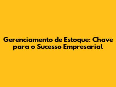 Gerenciamento De Estoque: Chave Para O Sucesso Empresarial