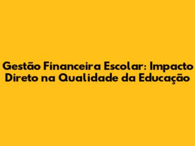 Gestão Financeira Escolar: Impacto Na Qualidade Educacional