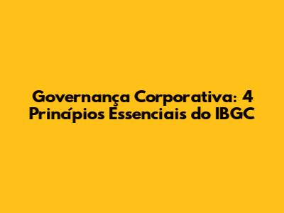 Governança Corporativa: 4 Princípios Essenciais Do IBGC