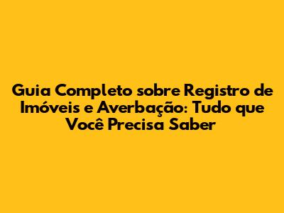 Guia Completo Sobre Registro De Imóveis E Averbação: Tudo Que Você Precisa Saber