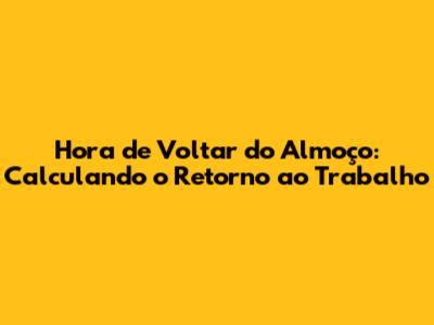Hora De Voltar Do Almoço: Calculando O Retorno Ao Trabalho