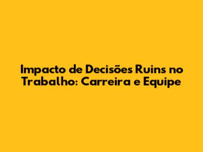 Impacto De Decisões Ruins No Trabalho: Carreira E Equipe