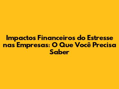 Impactos Financeiros Do Estresse Nas Empresas: O Que Você Precisa Saber