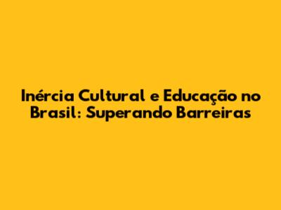 Inércia Cultural E Educação No Brasil: Superando Barreiras